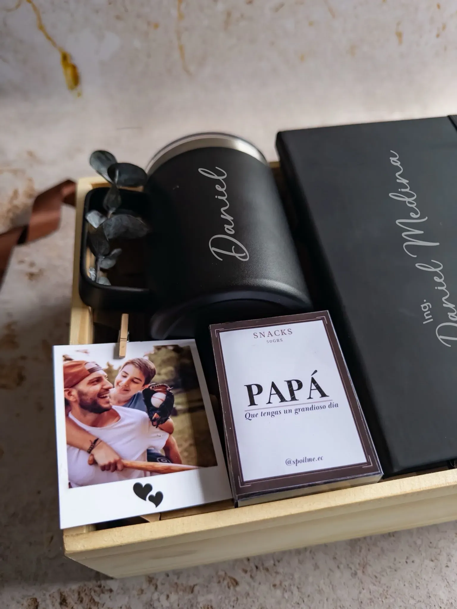 * Caja elaborada en madera pino con tapa deslizable, personalizada con grabado a láser